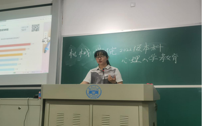 新征途,心教育。2022年9月27日晚,机械与运载工程学院2022级本科心理入学教育在教学中楼召开。此次讲座邀请了心理健康教育中心文姹紫老师主讲,学院2022级辅导员王玉迪老师参会。