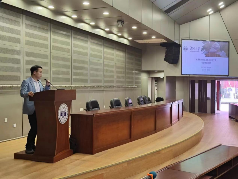 龙湘云给同学们介绍了学院及专业的整体情况。夏百战就工业工程专业的专业概况、专业特色、往届毕业生就业深造去向做相关介绍。张凯就机械设计制造及其自动化专业的发展历程、培养目标、课程培养体系等方面做相关介绍。张冠军就车辆工程专业的专业概况、研究方向、研究内容等方面做相关介绍。刘会铭就专业分流的步骤流程和注意事项做了相关介绍。
