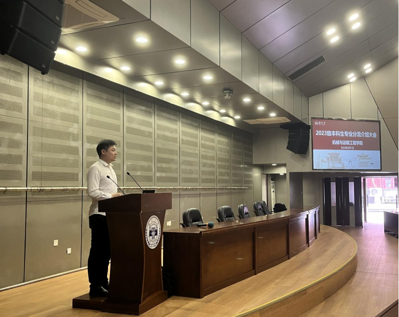 2024年5月7日,机械与运载工程学院本科2023级机械类分流专业介绍大会在逸夫楼报告厅举行。机械院龙湘云、夏百战、张凯、张冠军等专业教师,教务办教学秘书刘会铭,本科2023级辅导员黄敏出席本次大会,大会由黄敏主持。