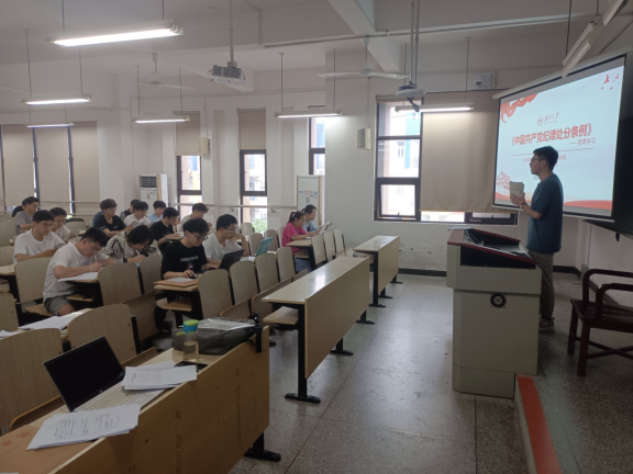 为扎实推进党纪学习教育,深入学习贯彻《中国共产党纪律处分条例》,引导全体党员学纪、知纪、明纪、守纪,机械院本科生党支部以廉洁自律为主题、以《中国共产党纪律处分条例》为学习资料开展主题党日学习。