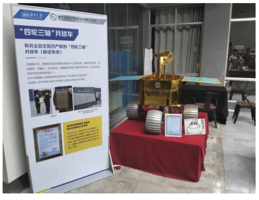 由湖南大学,教育部深空探测联合中心共同研制的月球车,具有构型新颖,结构简单,机动灵活等技术特点,是当时两台月球车移动系统样车之一。