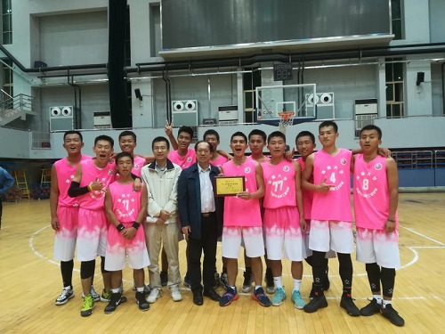 比赛结束,易洪波书记给机械院男篮颁奖,向队员们表示赞扬,并与大家合照纪念。