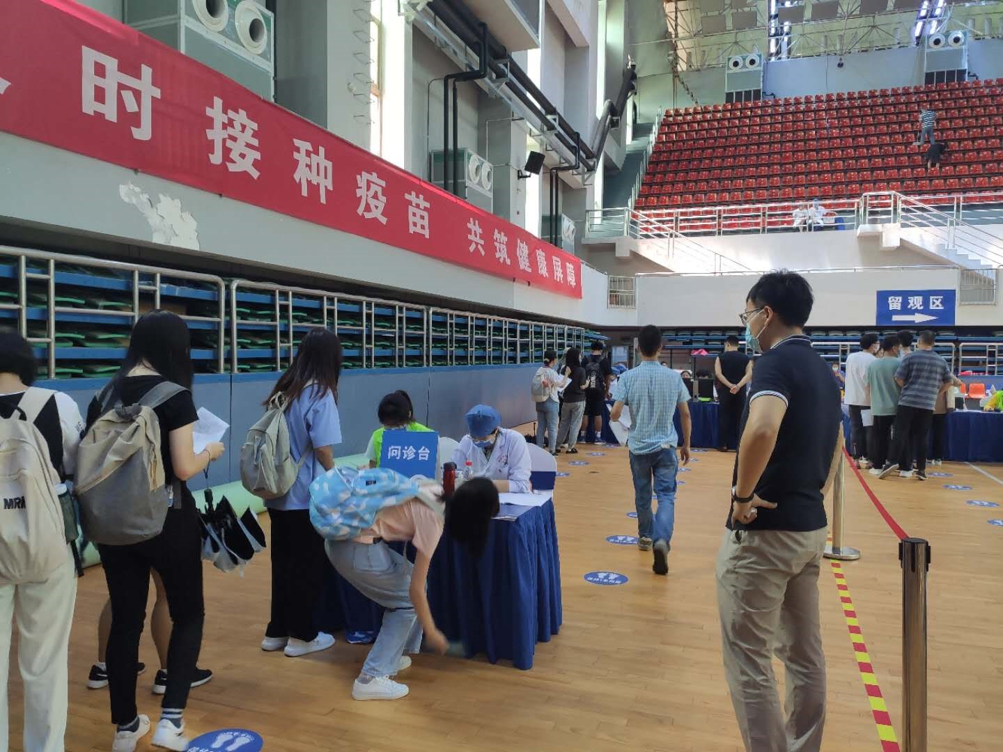机械院全体师生积极响应国家新冠疫苗接种政策,在提前了解各项注意事项和禁忌症后,各年级各班级学生携带各项证件及知情同意书在规定时间地点集合,在班主任老师的陪伴下有序按照流程进行接种工作。南校区体育馆一楼侯种区、二楼问诊区和留观区都能看到王兆龙老师、袁硕老师、范智超老师、冷尔唯老师等各个年级班主任老师的身影,其中陈鼎老师等班主任与班级学生一起完成接种,共同在留观区等候。班主任老师的陪伴给了同学们支持和依靠,让初次接种心存害怕的同学获得了勇气,让接种后出现部分不良反应的同学不至于惊慌失措。这种陪伴,无声却有力量,使机械院全体本科生的心中涌动着一股暖流。