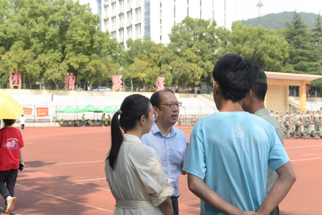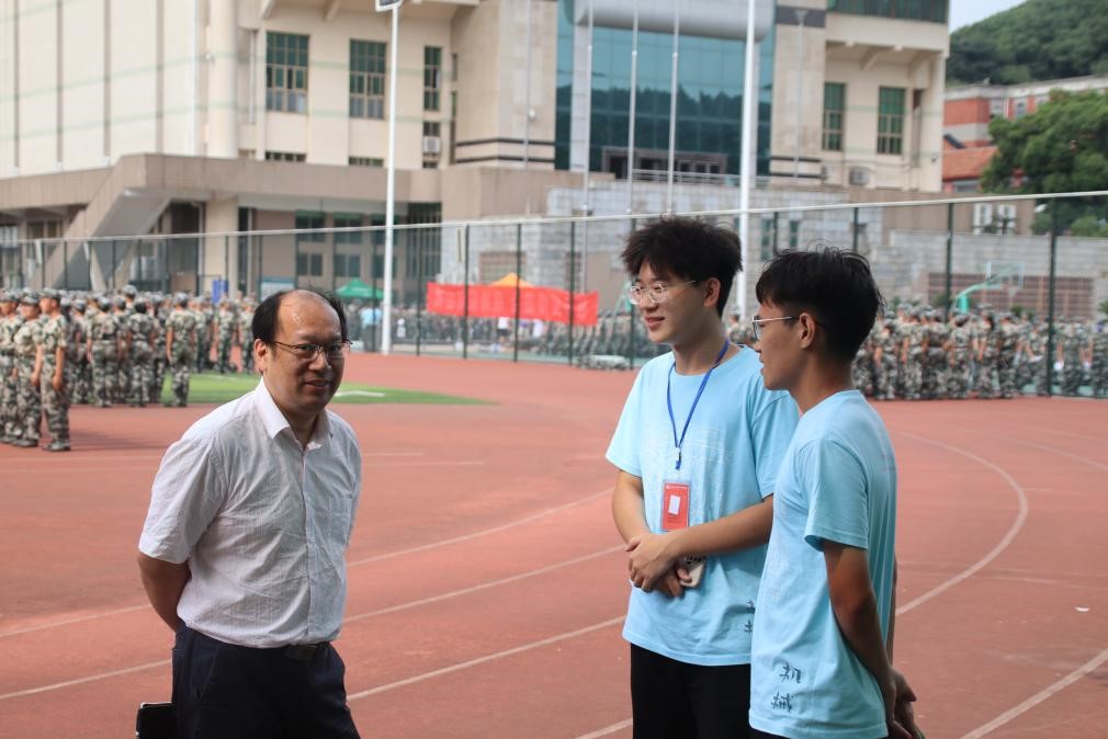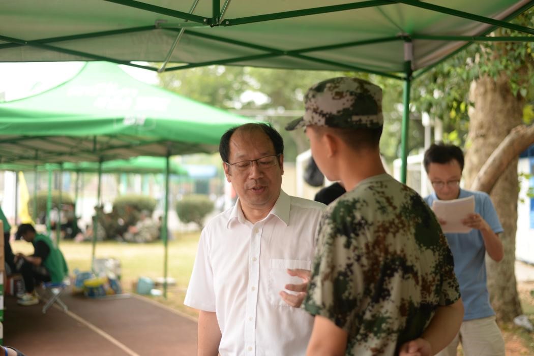 骄阳烈烈,军训如火如荼地进行着。学院领导始终心系同学,顶着高温酷暑,亲临军训场地给新生送去关怀,牢牢把握军训的第一手动态。机械与运载工程学院易洪波老师每天都来到大操场,和同学老师们交流谈心,认真了解军训的情况和进展。