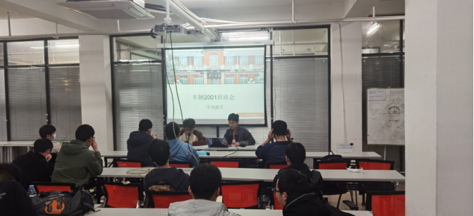 为积极响应学院的学风建设活动,车辆2001班于3月1日晚七点在图书馆研讨空间六召开了新学期的第一次班会。