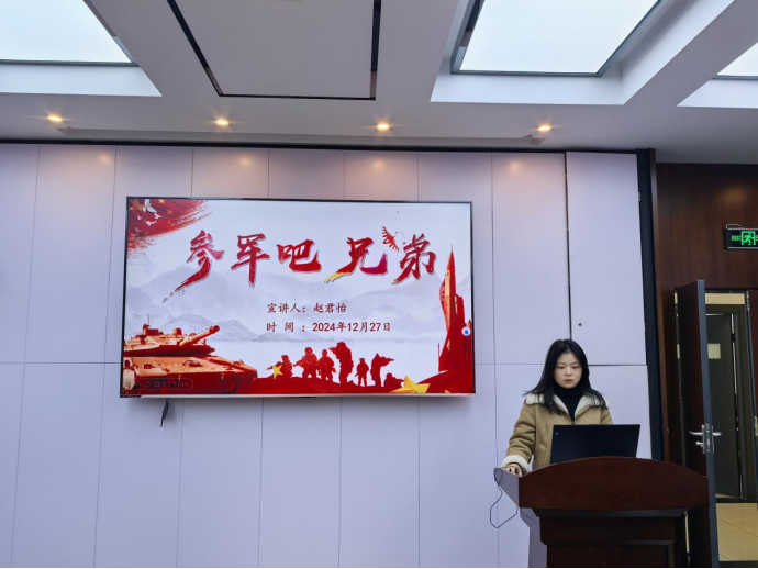 12月27日,机械与运载工程学院举办征兵宣讲会,学院辅导员赵君怡主持活动。