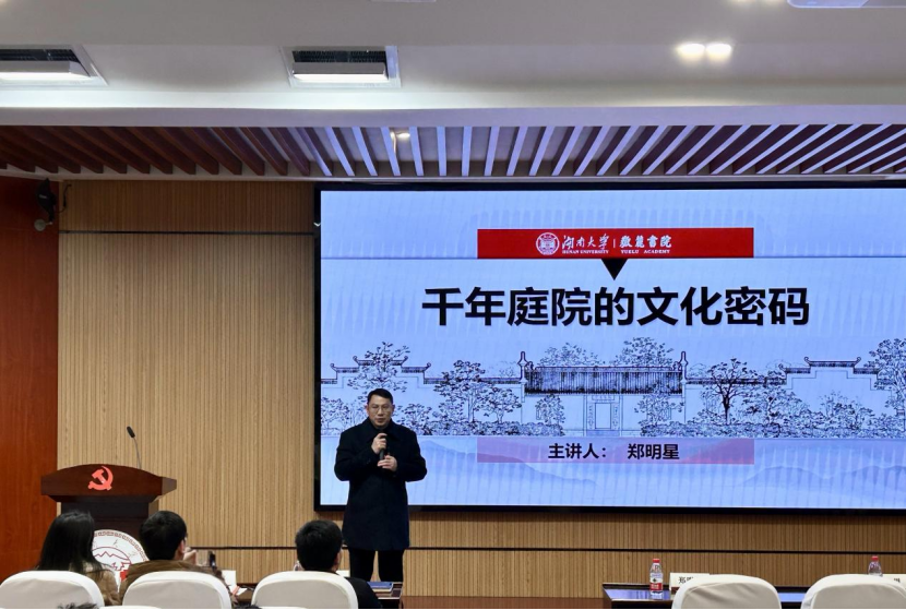 郑明星老师做主题为“千年庭院的文化密码”的专题讲座。在“千年庭院,千年人才”板块,他介绍岳麓书院自北宋起历经变迁,延伸到湖南大学办学的历史脉络。这里人才济济,尤其是近现代以来,岳麓学子积极投身民族进步事业,推动历史进程。