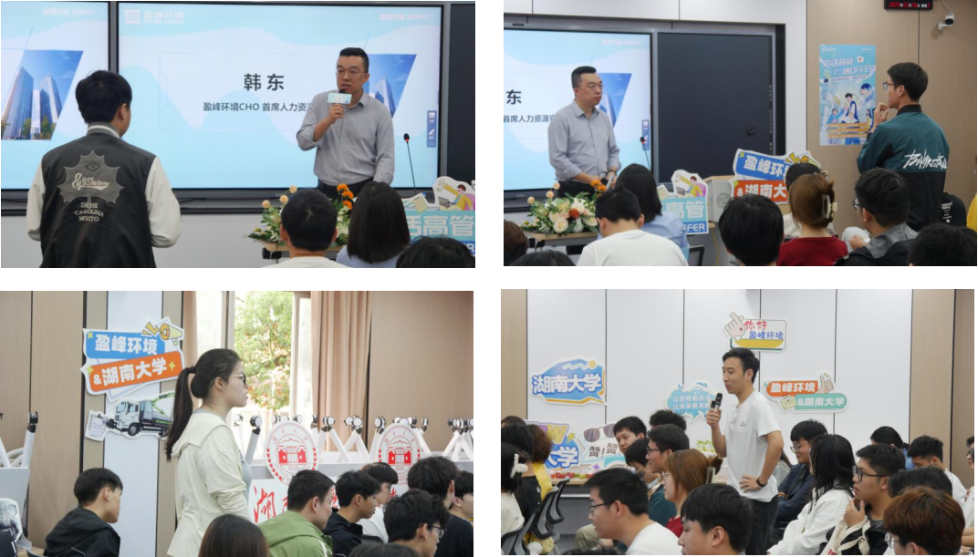活动伊始,孙曙光为湖南大学的同学们详细解读了盈峰环境的发展战略、业务领域以及行业地位,让我院同学对盈峰环境有了更为全面而深入的了解。他特别提到,盈峰环境在职的湖南大学校友现有80余名,其中担任干部的校友近20名,中高层骨干近40名。湖大校友遍布在研发、职能、营销、制造等各个领域。本次沙龙,盈峰环境还带来了校招及实习等多个岗位,其中,实习生计划预期5月中旬正式启动。