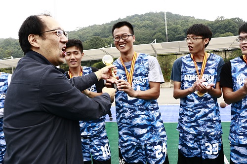 随后,在机械院研究生会主席贺宁的主持下,进行了第八届“新生杯”研究生团队篮球赛的颁奖典礼仪式。由易红波书记、张骏老师和王惠老师为篮球赛冠军队伍颁发奖牌和证书。同时,易红波书记给全场MVP球员刘习洲同学颁奖并对所有获奖队员表示祝贺。张俊老师对参与此次篮球赛的球员和全体工作人员的表现给予了肯定。