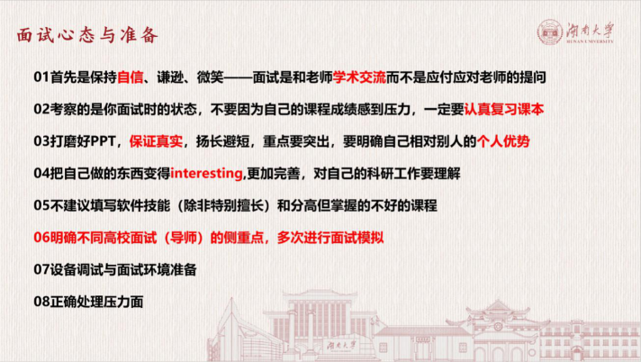 最后,王智立同学结合自身经历为同学们讲述了自己学习竞赛的经历与联系导师流程,在联系导师方面,他告诉同学们要仔细思考自己的定位与需求,根据自身选择合适的导师,主动与导师真诚交流。同时,王智立为大家分析了不同院校的招生情况,并对本次分享大会作总结。