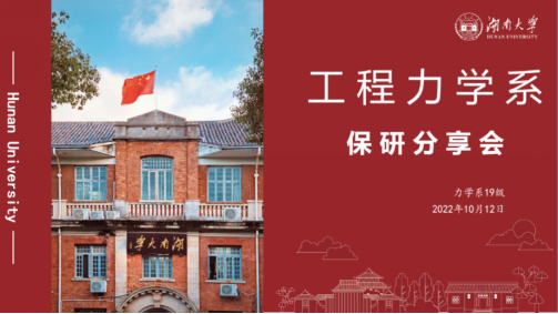 2022年10月12日星期四晚七点半,机械与运载工程学院工程力学系保研分享会在院楼401顺利召开。此次分享会旨在为同学们提供保研准备经验,分为推免情况介绍,经验分享,互动提问三个环节,会议由戴子骏同学主持。