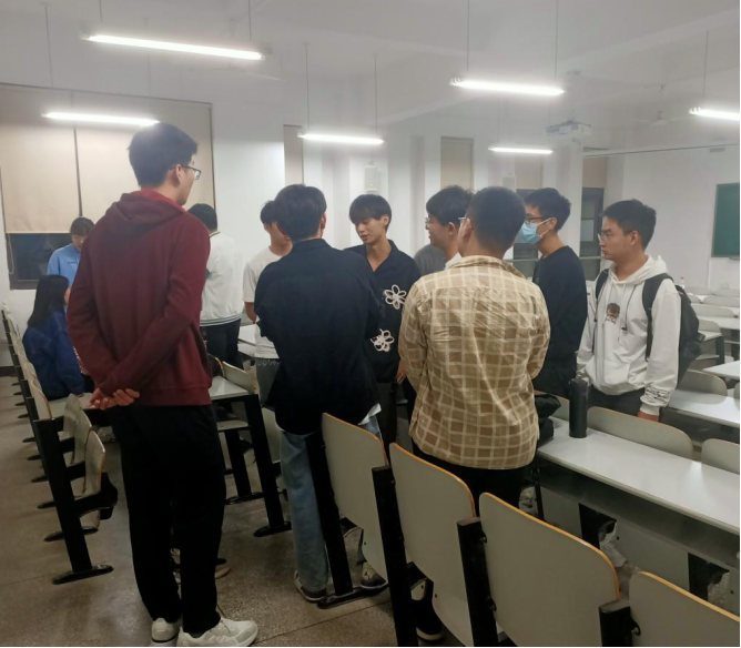 在自由讨论环节,先后有同学围在学长学姐的旁边提出疑问,1904班的学长学姐们对英语在保研的地位、在大三的课程体系下如何保持成绩领先、目前还能否参加科研项目或竞赛丰富自己的大学生活、夏令营面试的策略等具体问题进行了认真且详细的回复,并分享了一些小技巧,如准备多个版本的自我介绍、及时做好文件的整理和备份等,热烈的讨论一直持续着。