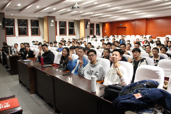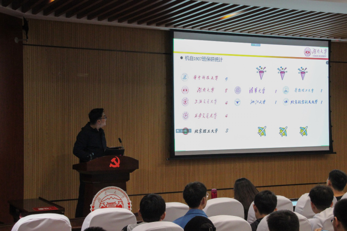 然后进入到优秀学长学姐经验分享环节,保研至上海交通大学的罗靖捷以丰富的科研经历与独到的大学规划给大家展示了他的保研历程;保研至清华大学的马骋浩为大家带来他保研路上的心得及选择直博的原因;保研到浙江大学的王栋从科研竞赛和排名的角度分析了如何进行自我定位;保研至北京理工大学苏靖骅从他车队的经历出发,分析了保研面试中的技巧以及他的收获;保研至湖南大学的赖彦佐为大家讲解了如何联系到导师和本校的优惠政策;保研至上海交通大学的戴婧为大家介绍了她在机创大赛中获得国家一等奖的经验;保研至上海交通大学的郑伟伦展示了他对待学习认真专注的态度;最后保研至华中科技大学的张健同学分享了他学习和保研过程的一些经验心得。台下的同学们也提出了一些关于保研和学习上的问题,学长学姐也都一一作出解答。