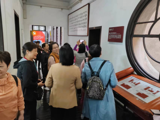 在课堂结束后,师姐们在校友助管组织同学的带领下来到了湖南大学科学馆(即红楼)合影留念,并一同前往参观湖南大学图书馆特藏分馆。彭馆长在门前已等候多时,在热情的招呼后指引她们参观旧图书馆,师姐们看到曾经上学时期的图书馆已然改造的典雅大气富有韵味,无不感叹当时的峥嵘岁月。在师姐问起现在学生们借书是否方便,了解到现在图书馆已开启预约制同学们可以轻松便捷地借阅图书时,不禁慨叹道当时听说一听说有新书入馆,一众师生就前去排队借阅,看到现在图书馆书籍的丰富多样更是欣慰万分。