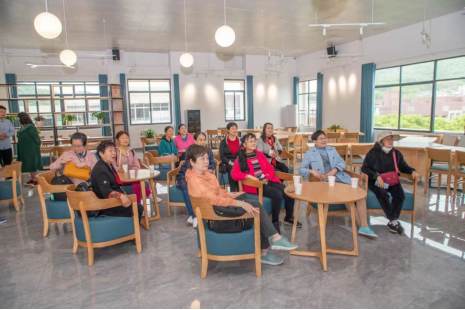 师姐们初至便受到了热情接待和问候,并在学院大楼门口合影留念。随后在贺书记的引领下,校友们共同参观了现在的机械院楼,观览了机械院优秀学生的光荣事迹及科研成就,参观了机械院富有创意的职工之家,切身感受到了机械院强烈的人文关怀与和谐氛围,无不对几十年来时过境迁的变化发出感慨与啧啧赞叹。参观机械院楼后,在六楼的图书室召开了会谈,由贺书记向校友阐述了这些年来湖大及机械院取得的成就和发生的变迁,校友们作为其中一部分历史的经历者,在会谈中展开了热烈的交流互动,甚至加入到这些历史与变化的讲述,现场热闹非凡,笑声愉悦。