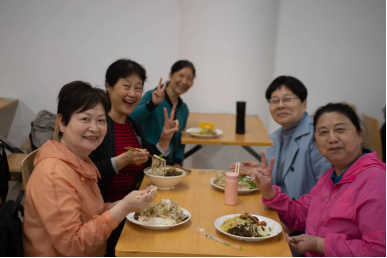 转眼已到晌午,师姐们前往四食堂(原女生宿舍食堂)就餐,看到熟悉的食堂位置,师姐们无不倍感亲切,但是食堂内部早已焕然一新,有了更丰富美味的菜品,更干净整洁的环境,在一丝陌生当中也感受到了由衷的欣慰。餐毕,师姐便在食堂门前回忆起曾经的宿舍布局,看到楼栋和当时的旧楼并列而站,也不仅感慨时过境迁。