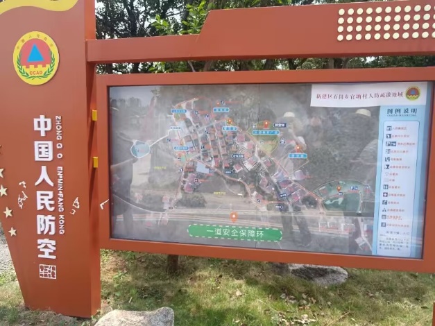 官塘村是新建区石岗镇政府重点打造的具有人防特色的村子,是人防工程(人民防空)的主要地点。这里具有深厚的人防气息,走在路上,随处可见有关人防的地方特色,这里有人防广场、人防长廊、防护林……这次官塘之行也让小队成员对人防工程有了更多的了解,通过村主任的介绍,小队成员们也深深地意识到了人防工程的重要性及必要性。