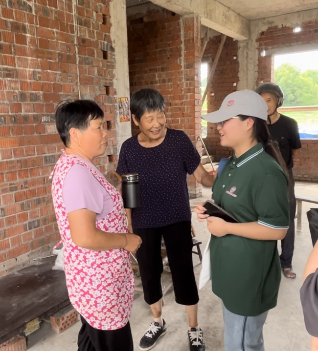 2023年7月29号下午,湖南大学赴浙江绍兴“新说吴语”推普团队在小镇集合分配完物资后,一路跋涉,对浙江绍兴市诸暨市次坞镇新民村的乡村老人进行了走访调查。