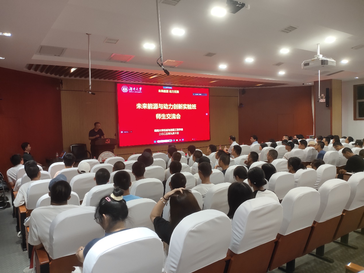 在学生们热烈的掌声中,2023级师生交流会圆满结束。此次交流会不仅充分宣传和展现了实验班以未来能源动力项目贯通教学链,探索创新领军人才培养体系,打造新工科得“湖大模式”的办学特色,加深了同学们对未来能源与动力的认识,也让更多的学生坚定了选择能动专业的决心、明确了未来努力方向,并将朝着成为“双碳”领军人才的目标不断奋斗。