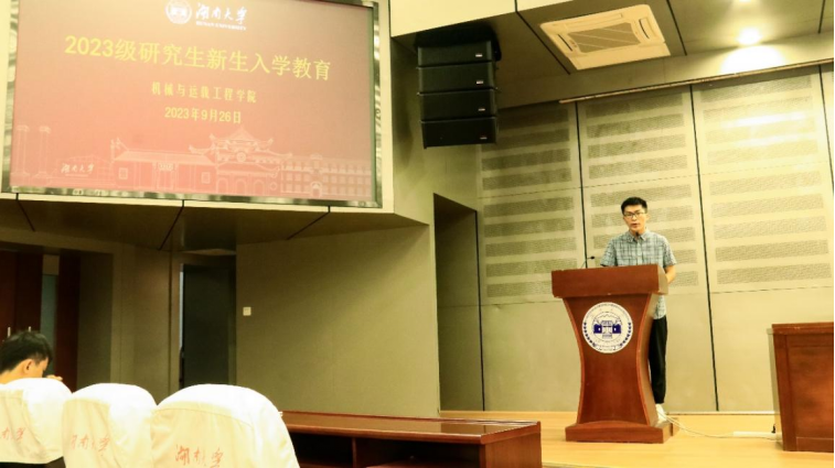 为帮助研究生新生扣好思想、学习和科研的“第一粒扣子”,9月26日下午,机械学院于逸夫楼报告厅举办了湖南大学“东方红故事会”暨优秀学子经验分享会活动。活动邀请到湖南大学优秀共产党员朱鹏程和牛启明为新生讲授个人先进事迹。活动由学院研究生辅导员周兵主持,2023级研究生参与此次活动。