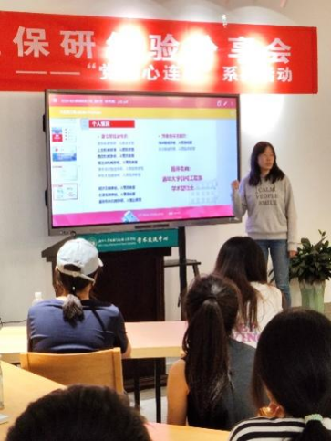 第二位进行分享的是张昕然同学。她详细地向学弟学妹们介绍了保研夏令营的整体流程,包括报名材料的准备、报名时间节点和面试准备等。关于在什么时间需要注意哪些信息、需要做好哪些准备等问题上,她都根据自身实际经历,给各阶段的学弟学妹们做了经验总结。