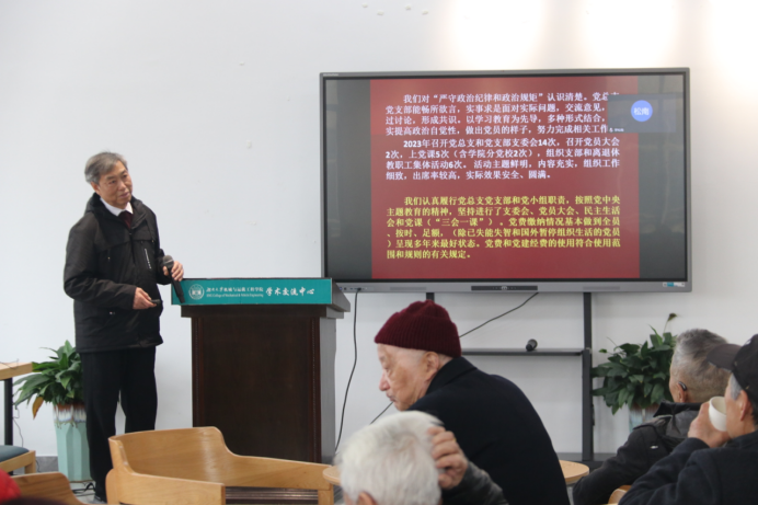李孟仁通报了离退休党总支工作开展情况。2023年,离退休党总支工作坚持以“三项建设”为工作核心,以提高服务质量为目标,积极组织各种适合老同志特点的活动,充分发挥离退休老教师在党的建设、人才培养、文化传承等方面独特优势,助力学院改革事业发展。