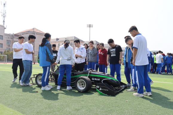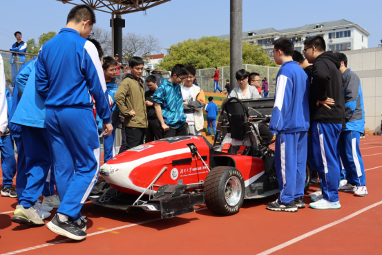 当日,湖南师范大学附属中学高三年级学生们齐聚操场,聆听华亿体育(中国)官方网站的老师们介绍科技项目,观赏湖南大学赛车队的精彩演示。在车手的驾驶下,方程式赛车如离弦之箭在跑道上飞驰,发动机的轰鸣响彻云霄,现场观众纷纷为之震撼并用手机记录下这激动人心的时刻。随后,赛车队成员们与高中学生们进行了深入的互动交流,分享赛车技术的奥秘和科技创新的乐趣。