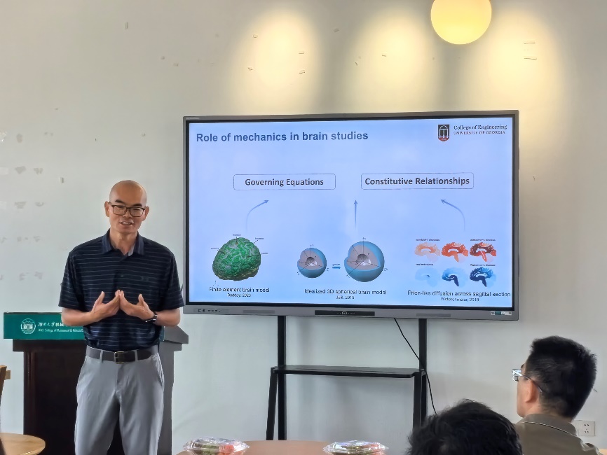 6月3日,机械与运载工程学院力学与航空航天系邀请杰出校友美国佐治亚大学(UGA)王贤锹教授为学院师生作题为“Data-Driven Brain Architecture: A Tale of Variability and Regularity”的学术报告。湖南大学粤港澳大湾区创新研究院院长段辉高教授、机械与运载工程学院力航系主任方棋洪教授等到会交流。学术交流会由侯淑娟教授主持。