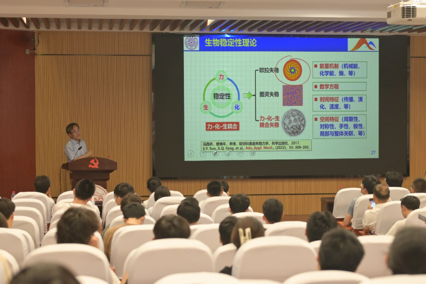 6月12日,受机械与运载工程学院力学与航空航天系邀请,中国力学学会副理事长、《Engineering Fracture Mechanics》主编、清华大学冯西桥教授,在机械院401报告厅作题为“力-化-生耦合的生物力学理论及其应用”的专题报告。报告由湖南大学党委常委、副校长姜潮教授主持。机械与运载工程学院副院长戴宏亮、系主任方棋洪、侯淑娟教授等学院领导和教师以及学院本硕博学生共计120余人到会交流学习。