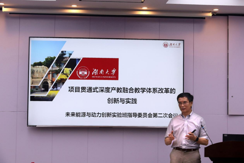 会议邀请了中国工程教育认证协会结论审议委员会副主任章競、广西玉柴机器股份有限公司总裁吴其伟、三一集团总裁助理梁晨、康明斯公司中国氢能源事业部总经理景帅、中国汽研新能源整车技术部部长王毅、东风康明斯发动机有限公司副总经理王勇波、东风康明斯发动机有限公司新能源技术部长彭倩迪,湖南大学副校长姜潮出席会议并致辞,康明斯原副总裁、能源与动力系教授彭立新做实验班工作汇报,教务处副处长(主持工作)张屹、机械与运载工程学院党委书记彭晓燕、机械与运载工程学院执行院长冯凯、机械与运载工程学院党委副书记刘明然,能源与动力工程系教师代表等参加了本次会议。