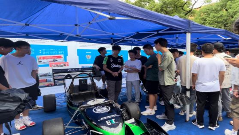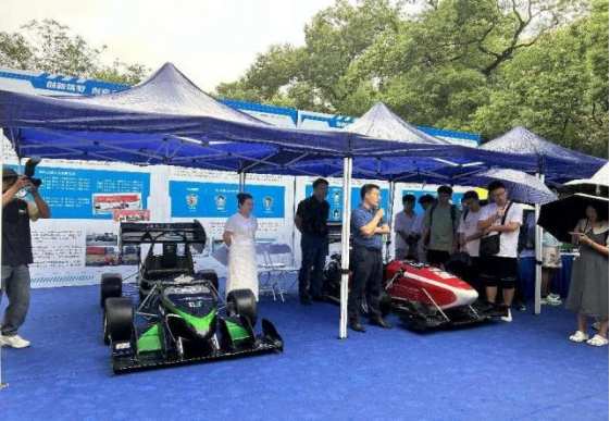 本次展出燃油方程式赛车及电动方程式赛车是由湖南大学赛车队自主研发、设计、制作。赛车队自2006年成立以来,已成功自主研发了16代高性能赛车,赛车设计从最初的传统油动赛车逐步扩展到电动赛车、无人车领域。赛车队吸引了来自多个学院的学生参与,在国家级相关赛事中多次获得全国总冠军,并代表中国队参加世界级的大学生方程式赛车赛事,成为学校的标志性科技实践团队。此次展出的HUR-2023 赛车采用半单体壳后车架设计,结合四缸自然吸气引擎,实现了约0.2kw/kg的功率质量比,并在4.0秒内完成0-100km/h的加速。该赛车在设计和制造中注重轻量化、舒适性和易操控性,不仅确保了性能,还提升了车手的驾驶舒适度和操控的顺畅性。