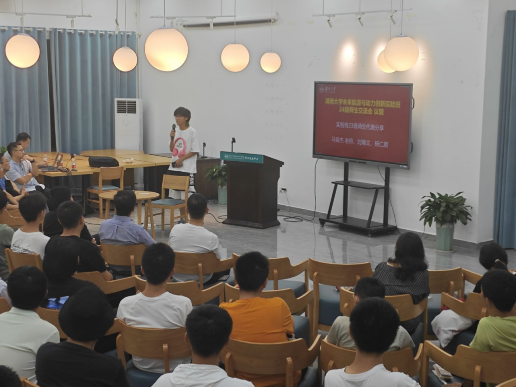 教师代表马寅杰、23级能动专业刘瀚文同学为同学们带来了2023级能源实验班的经验。从校园学习到寝室生活,他们以个人在校的感受给新生们提供宝贵建议。