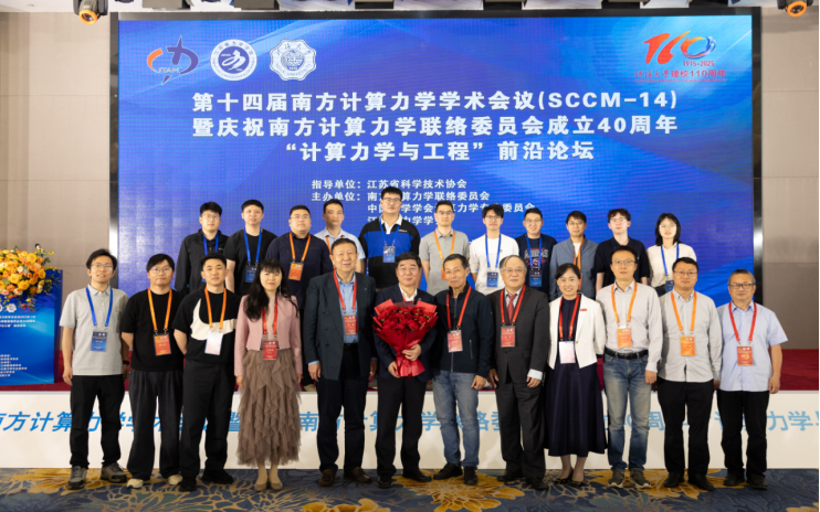 2025年4月18日至20日,湖南大学计算力学团队参加了在南京召开的第十四届南方计算力学学术会议暨庆祝南方计算力学联络委员会成立40周年“计算力学与工程”前沿论坛并获奖。本次大会由南方计算力学联络委员会、中国力学学会计算力学专业委员会、江苏省力学学会联合主办,由河海大学承办。会议以“AI赋能计算力学推动重大工程应用发展”为主题,吸引了全国600余名专家学者、青年老师和学生参会。湖南大学计算力学团队的龙述尧教授在本次大会获得南方计算力学联络委员会成立40周年“卓越贡献奖”,韩旭教授获得南方计算力学联络委员会成立40周年“突出贡献奖”并做大会特邀报告,侯淑娟教授主持大会特邀报告环节部分报告并做邀请报告。