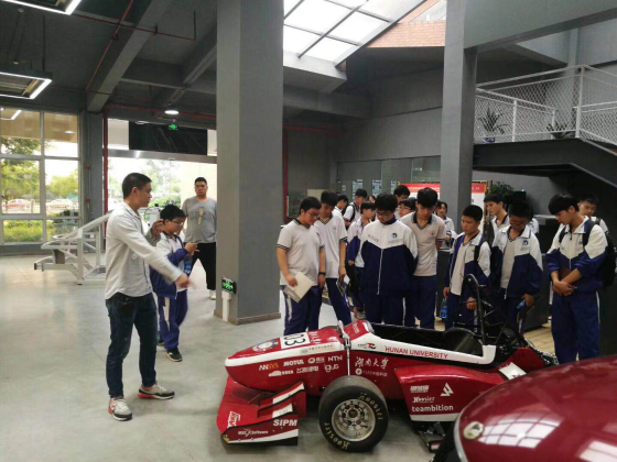 5月23日下午,长沙地质中学80名高二学生参观了汽车车身先进设计制造国家重点实验室。实验室2017级研究生孙凯、余安乾接待了来访的高中同学,并为各位同学重点介绍了实验室F1方程式赛车、工业机器人、3D激光及五轴联动机床等先进设备。来访的各位同学们积极提问、认真记录,表示通过参观加深了对汽车科技的了解,增强了汽车工业的兴趣。