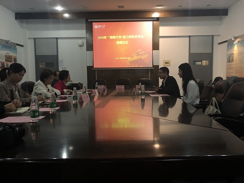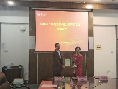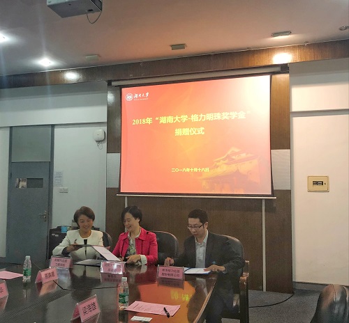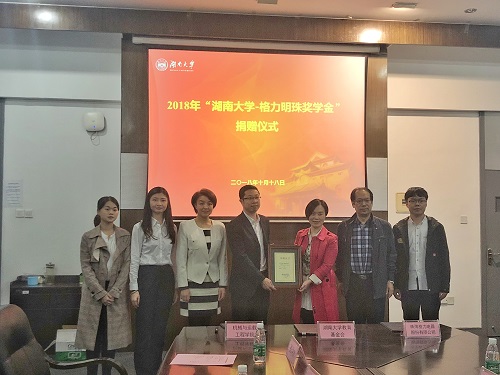 10月18日,“湖南大学-格力明珠奖学金”捐赠仪式在机械院楼516举行,珠海格力电器股份有限公司向湖南大学捐赠奖学金,主要用于资助、奖励优秀学生典型。珠海格力、湖南大学教育基金会、机械与运载工程学院相关单位负责人出席捐赠仪式。我院党委副书记易洪波主持仪式。