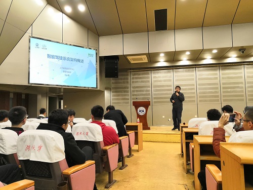 3月16日,首场“上汽大通攻城狮专家系列讲座”在逸夫楼报告厅举行,标志着我院与上汽大通合作开设智能网联专业课程项目正式启动。讲座由我院车辆工程系主任白中浩教授主持,上汽商用车技术中心智能驾驶产品开发科高级经理何业嘉先生主讲,智能网联汽车试点班、智能制造试点班、部分研究生等近五百名学生参加。