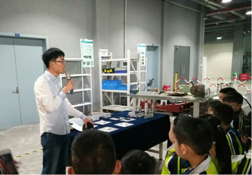 再往后,是电磁冲压工艺,与传统的凸模与凹模相配合成型的工艺不同,电磁冲压只使用到了凹模,利用电磁之间相互的排斥力使得钣金成型。同样,李老师用魔法比作电磁力,让孩子们在童话故事中感觉到了工程科学的魅力。