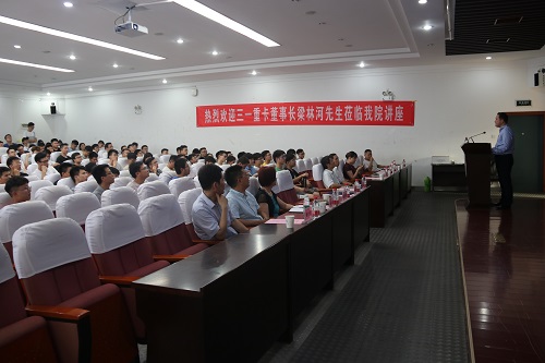 6月20日下午,三一重卡梁林河董事长任湖南大学兼职教授聘任仪式暨“创新与创业”学术报告会在机械与运载工程学院401报告厅举行。校党委常委、我院执行院长姜潮出席仪式,部分师生听取报告会。
