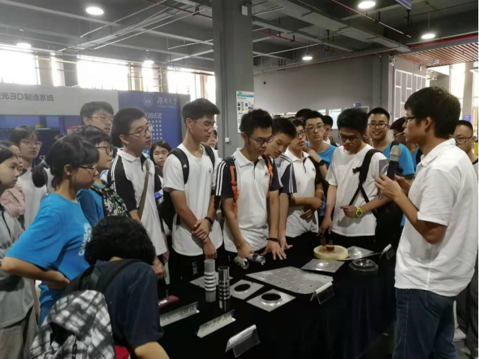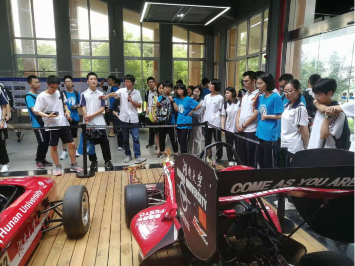 李彬博士首先向同学一行科普了与汽车车身设计制造相关的物理、化学基础知识,并用深入浅出的举例将同学们带入到参观的氛围中。随后他为同学们介绍了汽车车身先进设计制造国家重点实验室概况,重点实验室是国家在高校布局的三个汽车相关的国家重点实验室之一,在汽车车身先进设计制造方面处于国内领先地位。同学一行先后参观了实验室激光智能制造团队开发的五轴激光复合制造中心,以及基于机器视觉、基于熔池温度的激光增材制造实时控制技术。紧接着大家一起听取了磁脉冲成形技术,磁脉冲焊接技术,磁脉冲铆接技术介绍。最后李老师带领大家参观湖了湖南大学方程式赛车,向同学们介绍了赛车的技术细节以及湖南大学赛车队在国内外所斩获各大奖项等情况,同学们投来了崇拜之情。