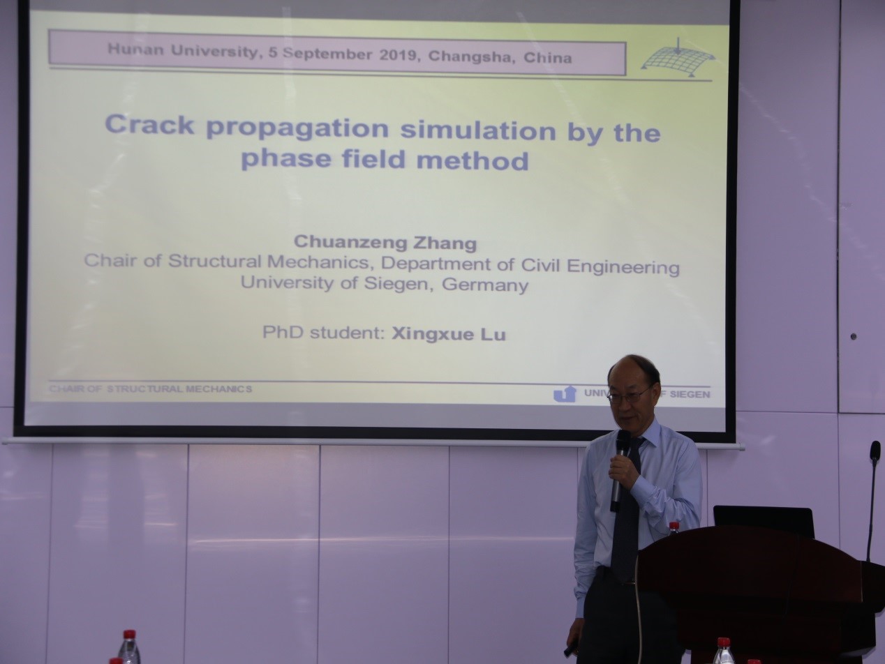 9月5日上午,欧洲科学院院士,德国锡根大学教授,著名力学专家张传增教授应邀在机械与运载工程学院316报告厅作了题为《Crack propagation simulation by the phase field method》的报告,我院执行院长姜潮教授主持了报告会。