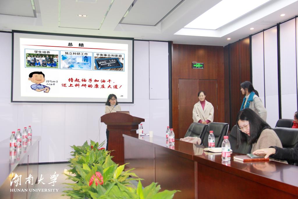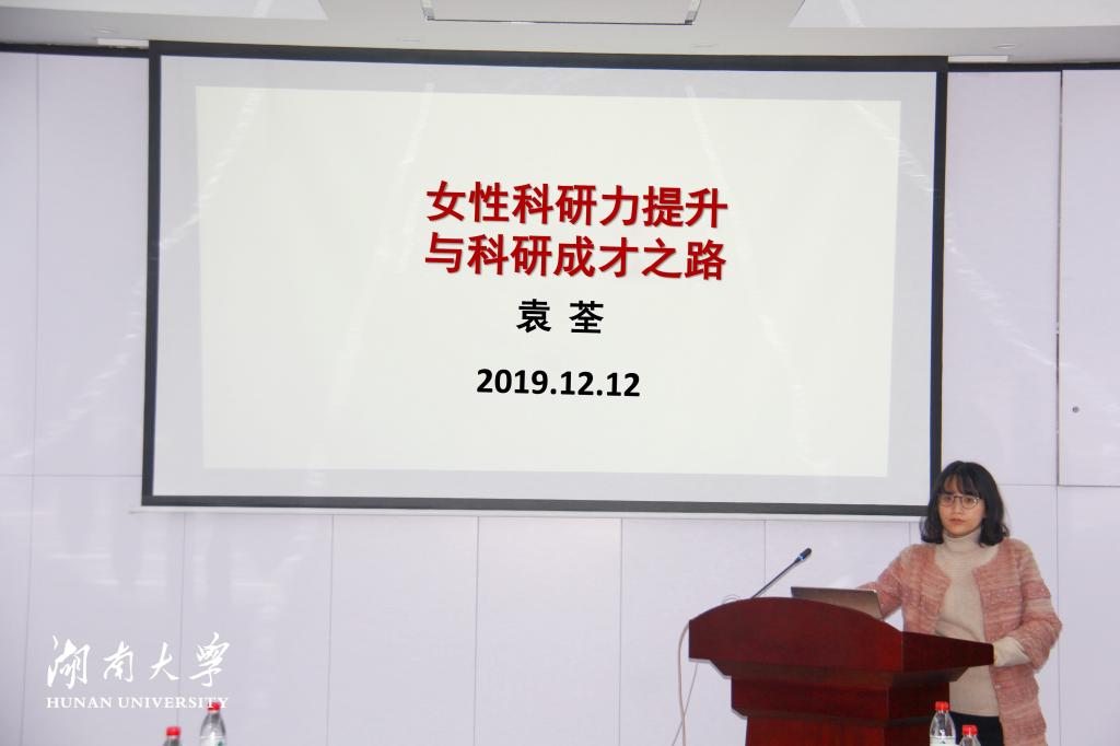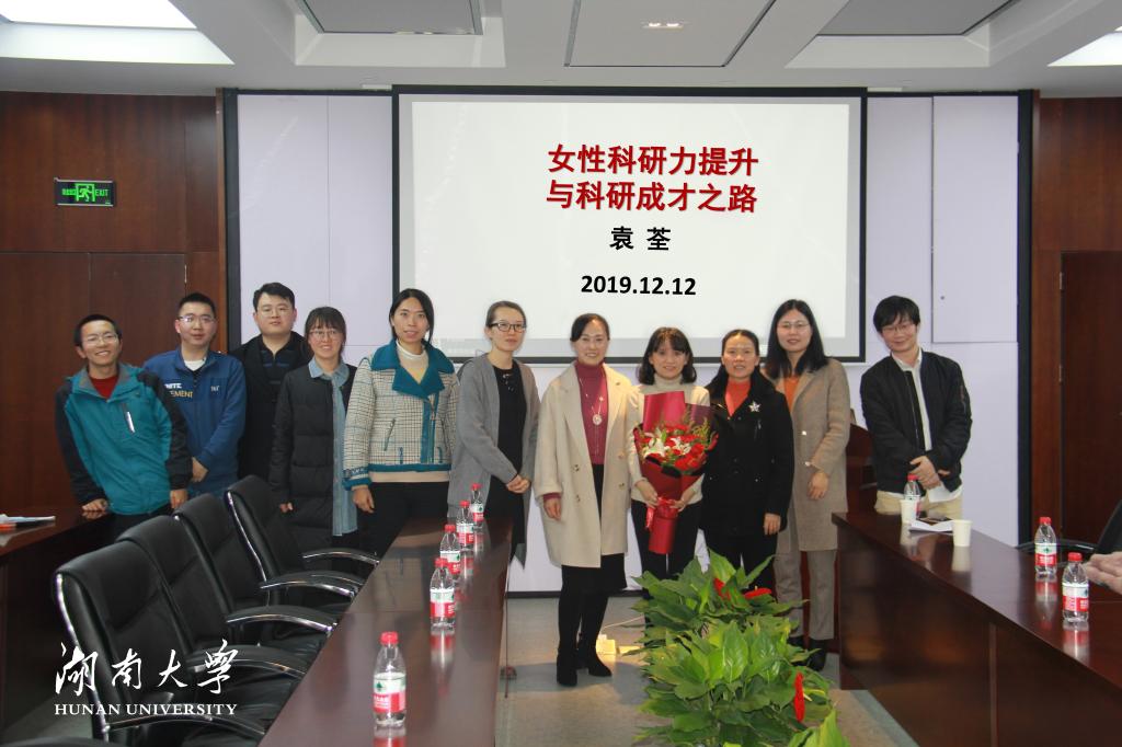 12月12日下午2:30,湖南大学化学化工学院教授,国家杰出青年基金获得者袁荃教授受邀在我院316会议室为来自多个学院的师生作了题为“女性科研力提升与科研成才之路”的精彩分享会。我院力学系教授侯淑娟教授主持会议。
