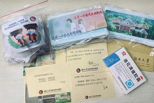 一份来自华亿体育(中国)官方网站与研究生会共同筹备的防疫爱心包,正在漂洋过海的送达湖大海外学子的手中。每个包裹中包含10个N95口罩,20个医用防护口罩,1盒连花清瘟胶囊,还有来自学院的寄语祝福卡片,这些将会送达美国、英国、澳大利亚、新加坡、日本、韩国、加拿大、法国、波兰、比利时的26名留学生手中。