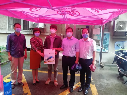 院领导为陈荣华发放防疫物资礼包