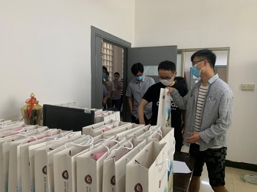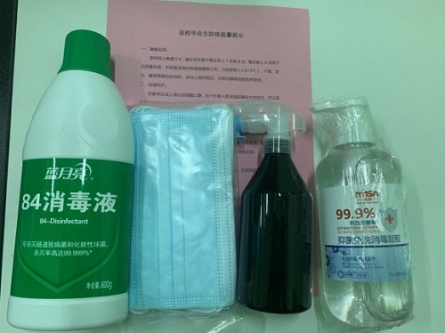 每个返校礼包中包含10个医用防护口罩,1瓶消毒液、1个消毒喷瓶、一瓶免洗消毒凝胶,还有学院给返校学生的防疫温馨提示。在发放过程中,辅导员叮嘱返校同学勤洗手、勤通风、戴口罩、少聚集、少外出、注意饮食习惯、加强身体锻炼,以最好的状态完成返校期间的学习科研工作。