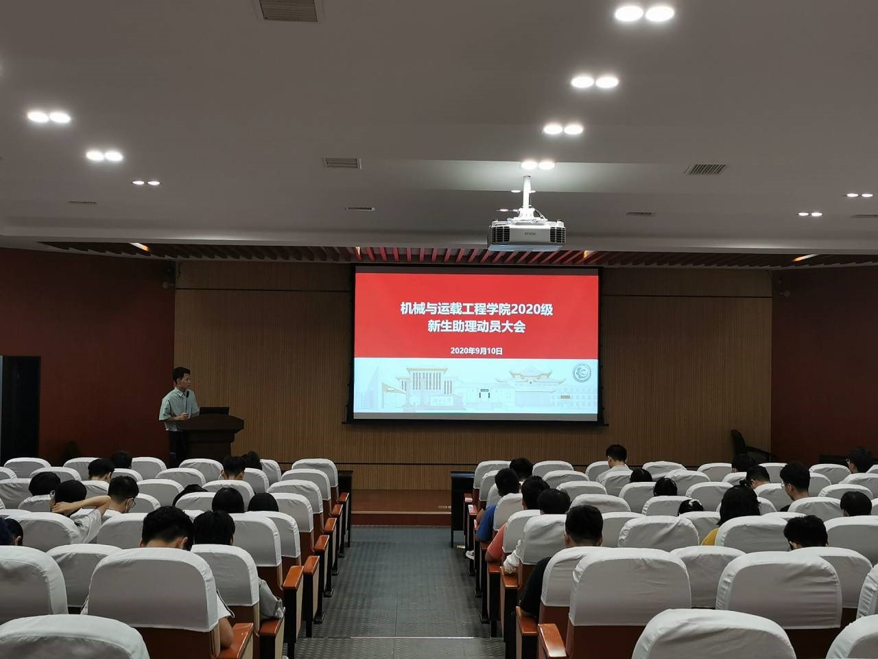 9月10日晚19:00,机械与运载工程学院2020级新生助理动员大会于院楼401报告厅顺利开展。机械院党委副书记易洪波、2020级辅导员叶胜老师、李明泽老师出席,全体新生助理参加会议。此次动员大会安排在军训前期,旨在激发班级助理积极性,增强班助团队的凝聚力,同时开展新生助理的团辅活动。