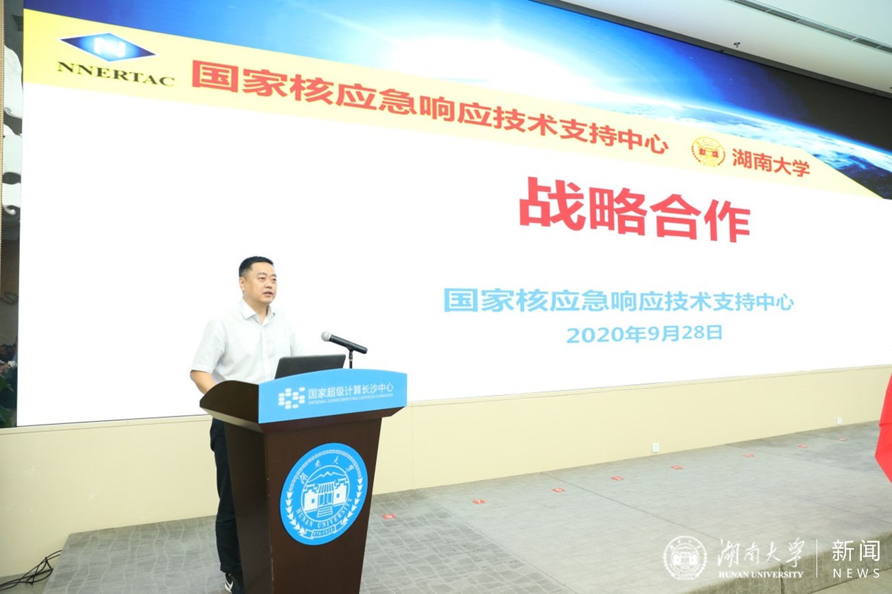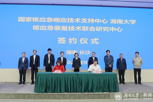 9月28日上午,湖南大学与国家核应急响应技术支持中心(以下简称“核应急中心”)全面战略合作协议签约仪式暨核应急装备技术联合研究中心成立大会在国家超级计算长沙中心举行。