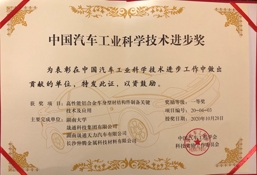 10月27日-29日,由中国汽车工程学会主办、世界汽车工程师学会联合会(FISITA)协办的中国汽车工程学会年会(SAECCE 2020)在上海召开。会议举行了2020年度“中国汽车工业科学技术奖”颁奖典礼,机械与运载工程学院李落星教授领衔的项目“高性能铝合金车身型材结构件制备关键技术及应用”,获得中国汽车工业科学技术进步一等奖。