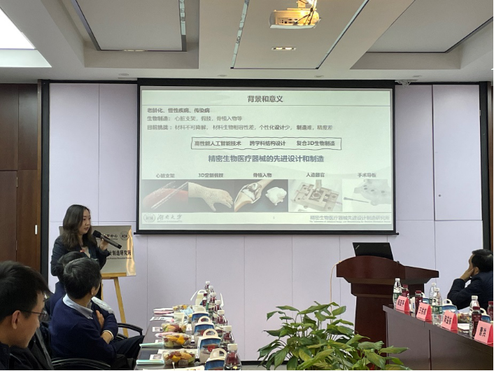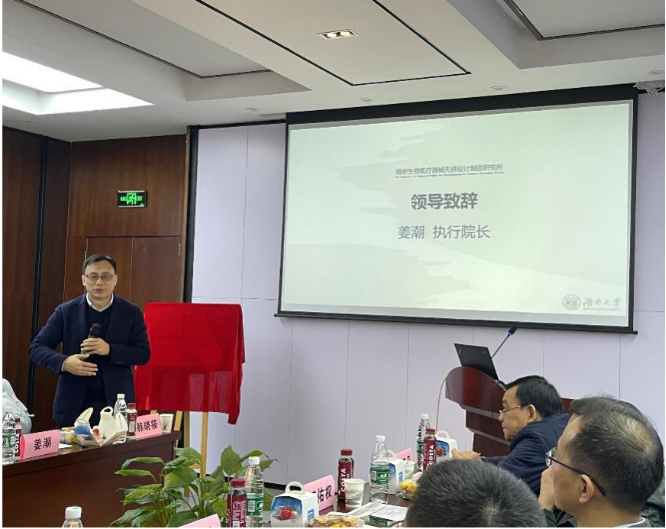 12月19日上午,机械与运载工程学院“精密生物医疗器械先进设计制造研究所”揭牌仪式暨“医工融合”学术研讨会在机械学院顺利举行。校党委常委、机械与运载工程学院执行院长姜潮,国家高效磨削工程技术研究中心主任金滩,南华大学附属第二医院副院长颜亚平、乳甲外科主任王佑权、副主任曹洪,上海黑焰生物医疗有限公司总经理陆益栋以及湖南大学材料学院、化学化工学院、生物学院的老师等出席揭牌仪式,研究所负责人韩晓筱出席并主持会议。