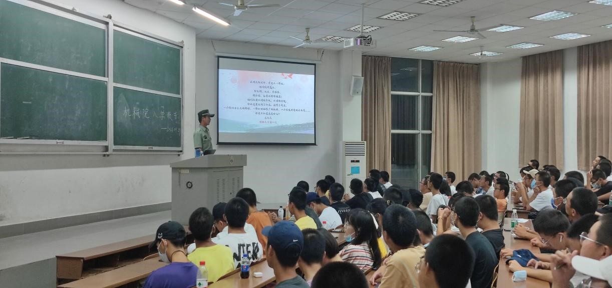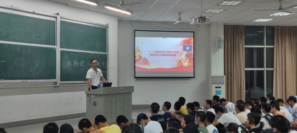 为了进一步加强国防教育,帮助广大同学了解征兵政策,机械院于9月29日19:00在复临舍召开了国防教育与征兵政策讲解会议。本次会议由武装部廖正明老师及湖南大学自训队成员主讲,学院2021级全体新生共同参加。