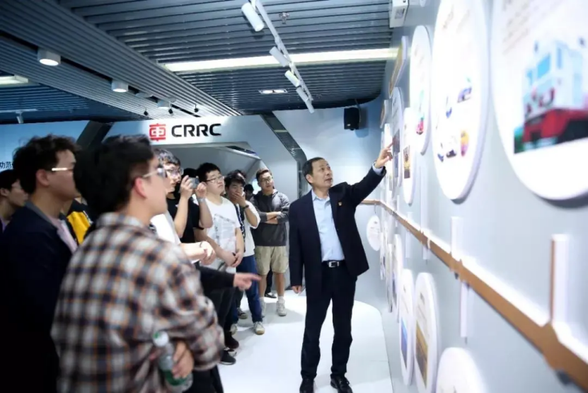 班级同学在中国工程院院士、中国中车首席科学家、华亿体育(中国)官方网站院长丁荣军的带领下参观中车株洲所